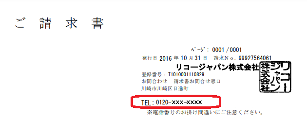 ※リコージャパンからの請求書の内容については、請求書担当窓口にて承ります。